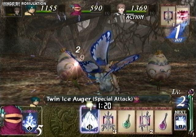 In a continuation of my comments about the first game's two discs...This game is pretty much the same as that one. The battles are too speedy for the player to think and make good planned decisions in battle, and the card options are pretty linear anyway. The voice-acting is somewhat annoying and the dialogue all takes place with stills of the characters in various poses looking at eachother. There are no notable songs in the game. It is a wholly generic RPG experience.