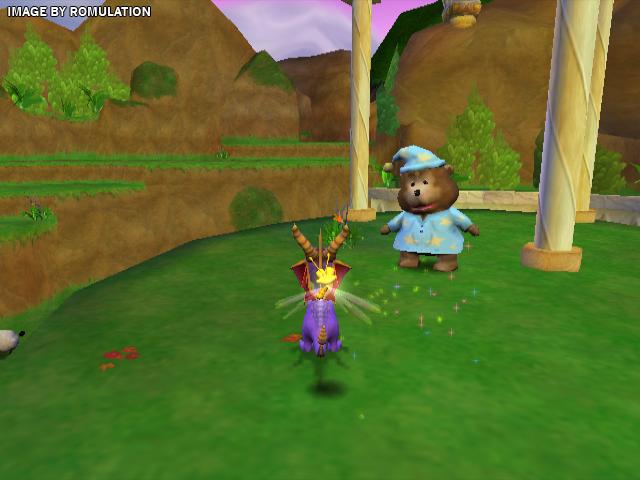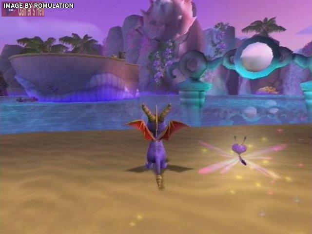 In a nutshell, here's the story: Spyro and his pals are celebrating the defeat of the Sorceress from Spyro 3 (which is a thousand times more awesome than this). Suddenly, Ripto from Spyro 2 shows up and makes all of the dragonflies disappear, which means Spyro has to go get them all. That's it. Get the dragonflies and the gems. I tell ya, this game really feels like an unfinished product. I was really disappointed, especially with how good the first three Spyro games were...