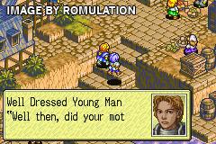 Time for da pros to comment---ok this is the best and i do not exaggerate when i say the best tactical R.P.G in the G.B.A. Its so worth the download....its got a "GREAT" storyline and a lot of items...there r many clases more then 10 for every sex ( the clases difer for female characterz) now u get to buy spels and during the later part of the game u get reli cul summoning spels. The weapons r reli great and another cul feature is the persuading tactic whch alows u to persuade below-leaderclass charactes. The game is reli easy if u take the right steps and get all the 'dragon scales'. The game also has a quest option which alows u to get cul items.I cnt find any drawbacks for the game and so overal its a wel deserved 5/5.